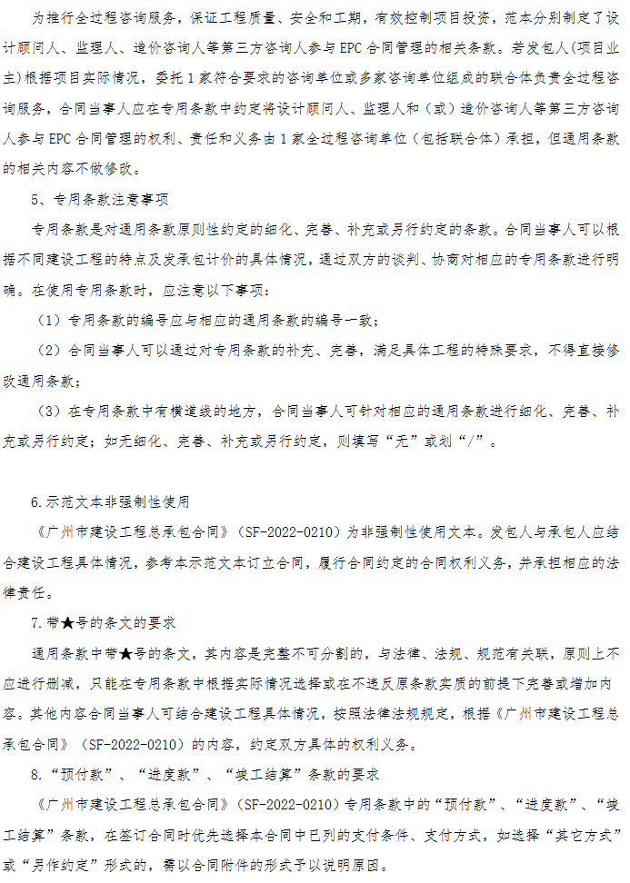 如采用广州市建设工程公开招标项目招标文件系列范本的建设工程总承包招标项目,应配套使用本合同示范文本。