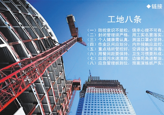 《工地八条》从树牢防控意识、加强用工实名管理、认真做好个人健康等环节对建设工地疫情防控提出基准要求 为坚决贯彻党中央、国务院关于疫情防控的决策部署,全面落实省委常委会提出的七条措施,按照对防控漏洞再排查、防控重点再加固、防控要求再落实的要求,省建设工地疫情防控工作专班近期发布了疫情常态化防控的《工地八条》,从树牢防控意识、加强用工实名管理、认真做好个人健康、抓好应急处置等环节,对建设工地疫情防控