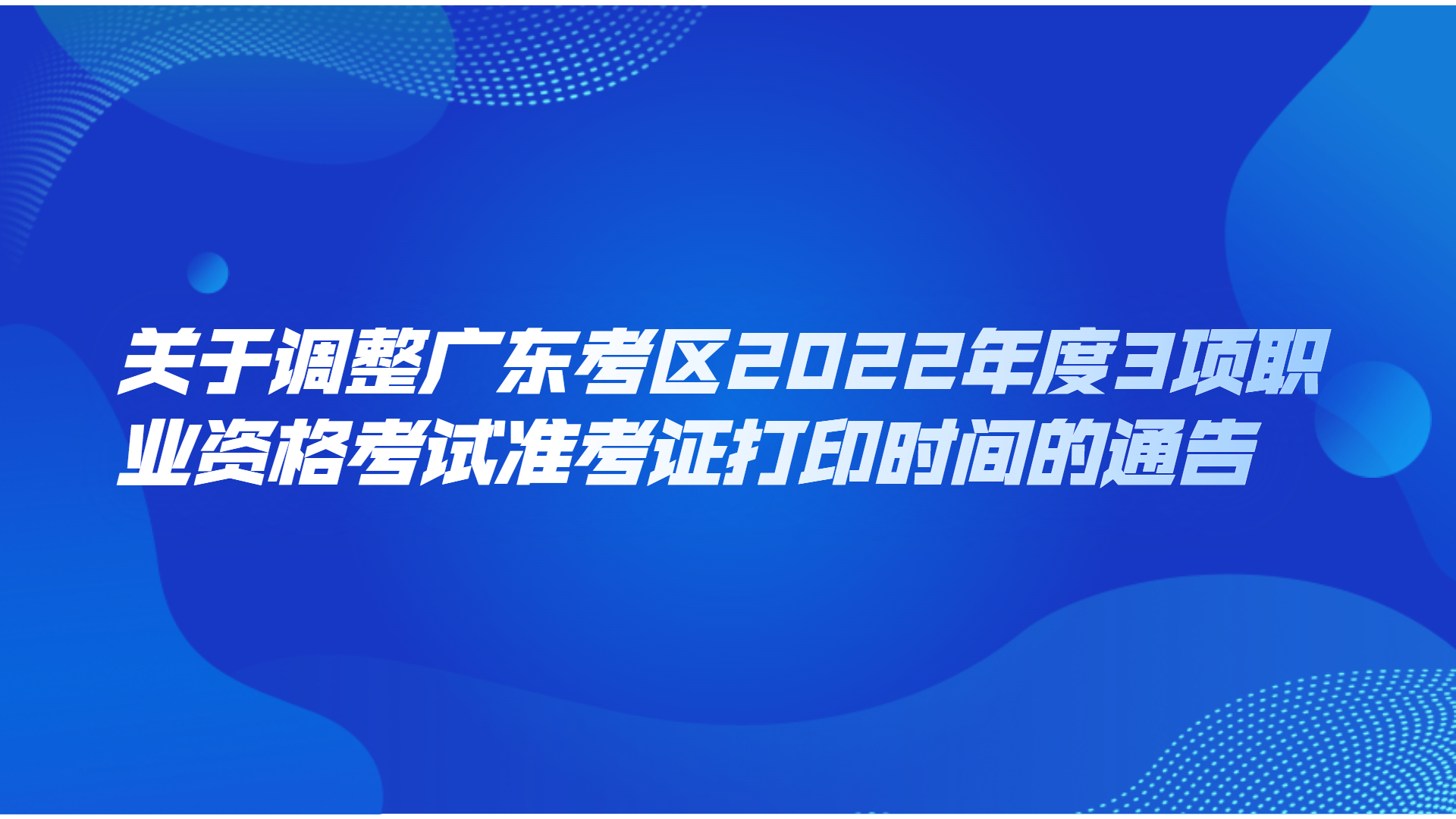 根据疫情防控有关要求,因个别考点需要调整,广东考区2022年度经济专业技术资格考试(初、中级)、一级造价工程师职业资格考试、房地产估价师职业资格全国统一考试共3项考试的准考证开始打印时间,由11月7日(周一)9:00调整至11月9日(周三)9:00。 届时若有其他变化,将另行通知。请相关考生密切关注广东人事考试网和报名所在地