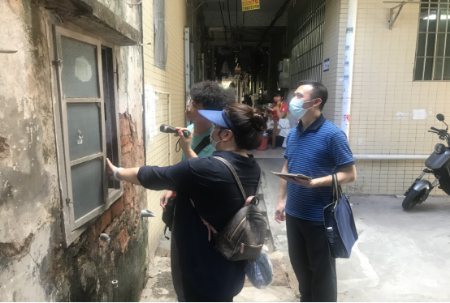 为进一步加强广州市城镇房屋使用安全监管工作,确保2022年房屋安全普查工作按期保质推进,7月21日上午,市建设科技中心六级职员李毅锋带队前往荔湾区冲口街道、中南街道等9个街道开展2022年房屋安全普查质量抽查工作。 (抽查现场) 此次抽查主要包括复核普查作业单位采集或更新的房屋安全基础数据,重点抽查社区中的危房、严损房、老旧房屋及3层以上和经营性人员密集场所。针对检查发现的问题,检