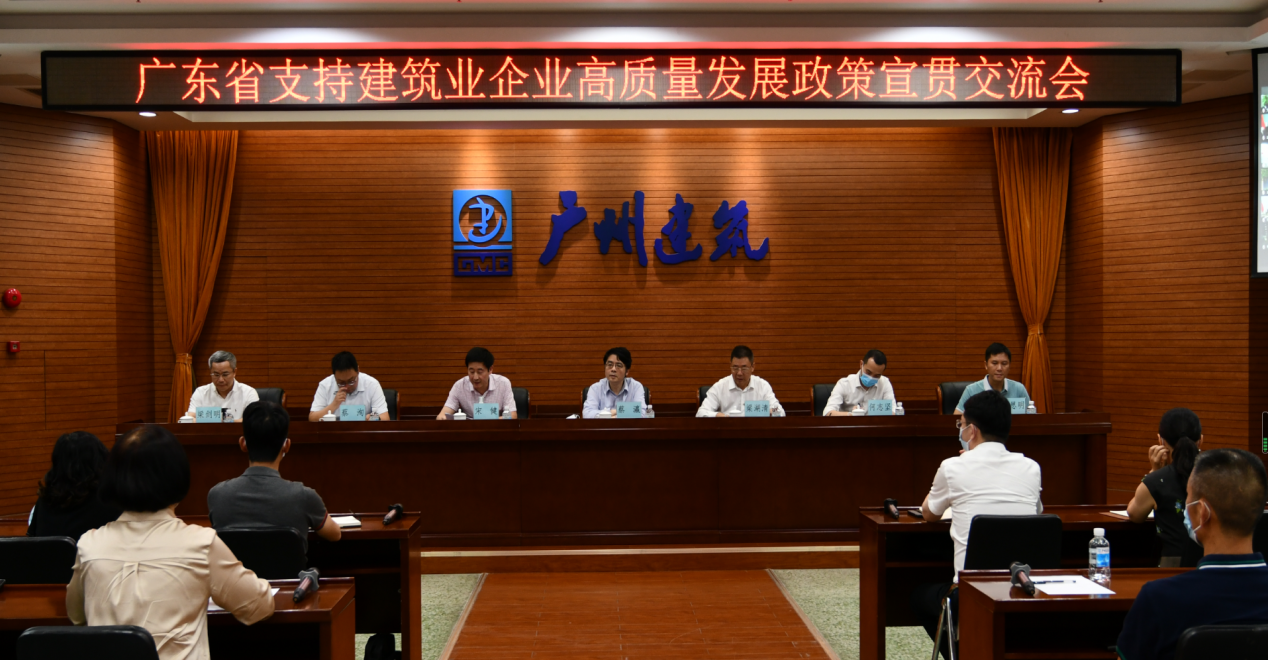 6月22日,省住房城乡建设厅在广州组织召开广东省支持建筑业企业高质量发展政策宣贯会。厅党组成员、副厅长蔡瀛出席会议并讲话。全省300多家建筑业企业,500多人线上线下参加会议。 为严格落实新冠肺炎疫情防控要求,本次会议采取线上线下同步的方式举行,主会场设在广州建筑集团,分会场设在广州一建建设集团,全省各地级以上市建筑业协会组织本地企业通过网络线上参会。会议有两项主要内容:一是宣贯我省支持建筑