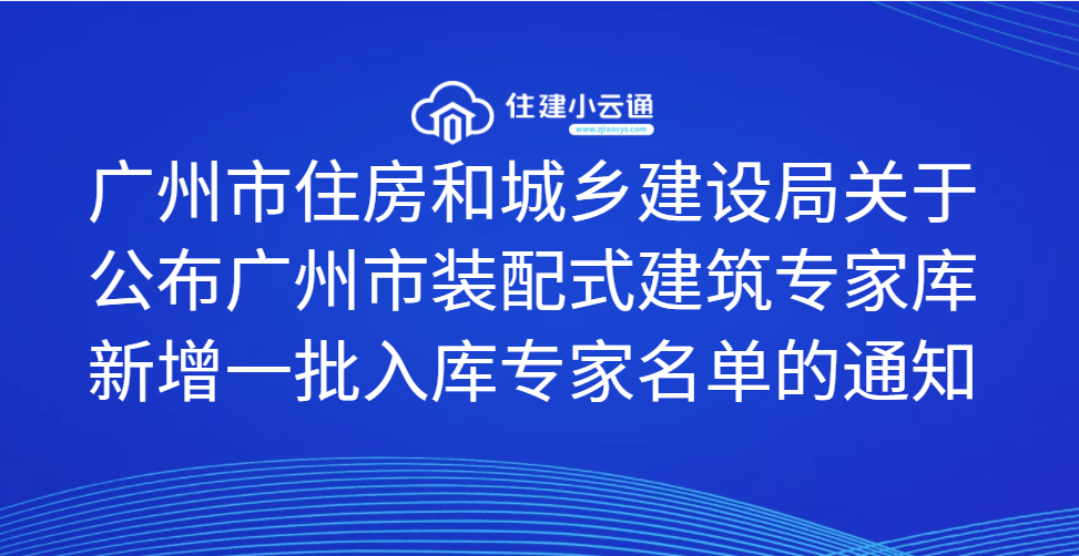 各有关单位: 为进一步发挥行业专家技术指导作用,壮大行业专家队伍,服务我市装配式建筑发展,按照《广州市住房和城乡建设局关于公开征集2021年广州市装配式建筑专家的通知》,我局组织了装配式建筑专家的征集工作,并已完成申报资料审核、筛选、对外公示等程序。现将广州市装配式建筑专家库新增一批入库专家名单予以公布,具体名单详见附件。 特此通知。 附件:广州市装配式建筑专家库新增一批入库专家名单.doc